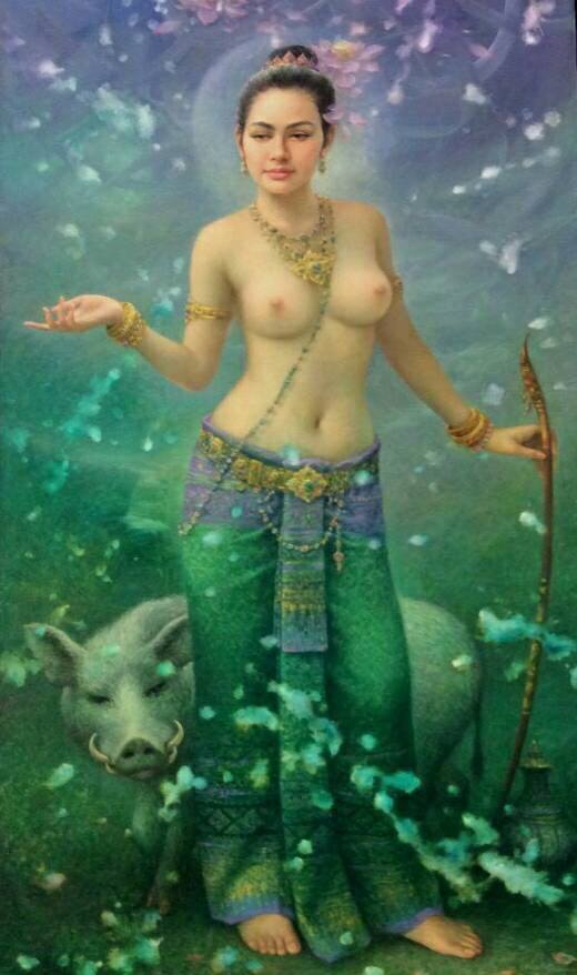 เห็นภาพนางในวรรณคดีที่แชร์กันอยู่ในโลกโซเชียล พอเพ่งดูก็คุ้นตาทันทีว่านี่คือ นักแสดงอกอวบหน้าไทย ตั๊ก บงกช นี่เอง ซึ่งภาพดังกล่าวกำลังถูกจัดแสดงอยู่ที่พิพิธภัณฑ์ศิลปะไทยร่วมสมัย (Thai Contemporary Art Museum) หรือ โมค่า แบงค็อก อาณาจักรงานศิลป์ของ เจ้าสัวบุญชัย เบญจรงค์กุล สามีของสาวตั๊กเธอนั่นเอง