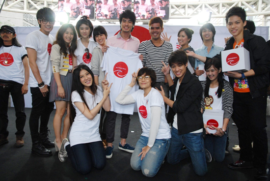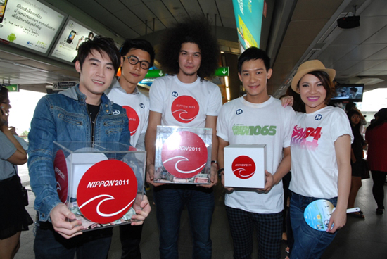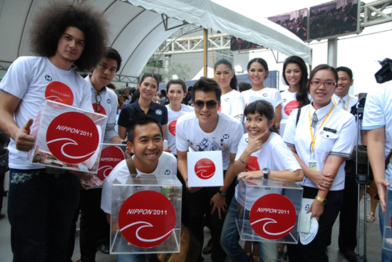 วันพุธที่ 16 มีนาคม 2554 เวลา 12.00-19.00 น. @ Parc Paragon Siam Paragon นับเป็นการร่วมตัวรวมน้ำใจ รวมกำลังใจ อย่างยิ่งใหญ่แบบเฉพาะกิจของคนบันเทิงบรรดาเซเลบ ศิลปิน ดารา นักแสดง คนในแวดวงบันเทิงจากทุกสังกัด โดยไม่มีแบ่งแยกค่าย นำทีมโดยมี วู้ดดี้ - กาละแมร์ – จ๋า ยศศินี – นก ศิขรินธาร – ส้ม ณัชพร เป็นแม่งานระดมเพื่อนพ้องน้องพี่ในวงการมาร่วมกันจัดทำเสื้อเฉพาะกิจเพียง 3,000ตัว ขายในราคา 300 บาทซึ่งขายหมดเกลี้ยงภายในเวลาไม่ถึงครึ่งชั่วโมงที่เปิดขาย และรายได้อีกส่วนหนึ่งคือจากเงินบริจาคของประชาชนที่มาร่วมงานและบริษัทเอกชนใกล้เคียงบริจาครวมไปถึงจากการประมูลเสื้องาน,สายรัดข้อมือ,หนังสือภาพsendai,ขนมคริสปี้ครีมที่มีลายเซ็นต์ดาราดังรวมทั้งจากการบริจาคเงินของเหล่าดาราศิลปินเองอีกจำนวนมาก
