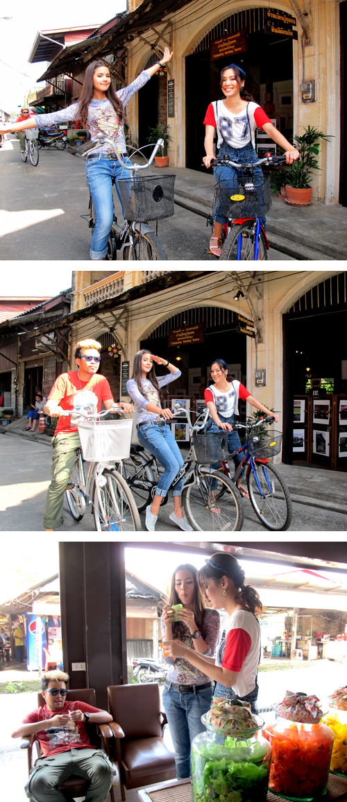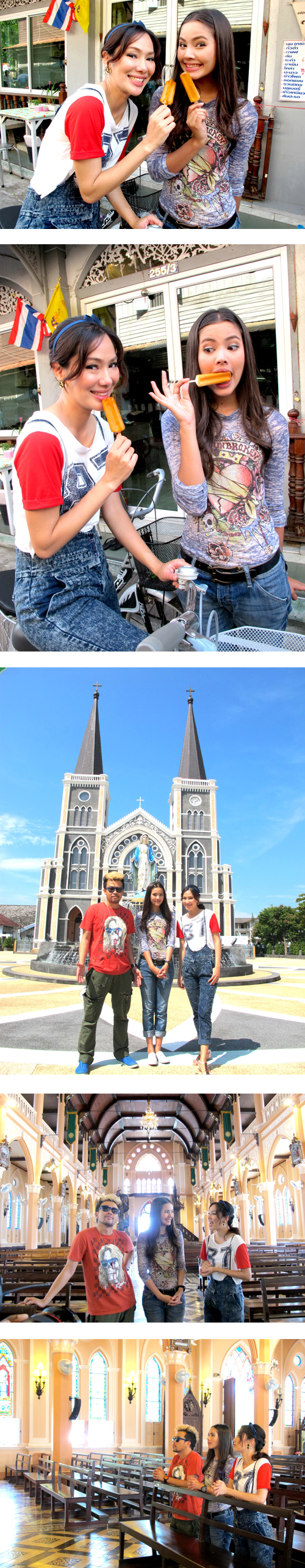 จากนั้นสาวญาญ่าก็ไปสะดุดตาร้านขายของฝากร้านหนึ่ง ซึ่งเธอก็ไม่รอช้า รีบเข้าไปซื้อของฝากน่ารัก ๆ ให้กับเพื่อน ๆ ไม่ว่าจะเป็นโปสการ์ด หรือของกระจุกกระจิกต่าง ๆ และที่ดูเหมือนจะถูกอกถูกใจสาวญาญ่ามาก ๆ ก็คือ ลูกอมโบราณสีสันสดใส ที่สาวญาญ่ากวาดซื้อไปฝากเพื่อนหลายถุงเลยทีเดียว พอพักเหนื่อยชมของสวย ๆ งาม ๆ กันแล้ว น้าเน็กก็พาสาวญาญ่าปั่นจักรยานไปกินไอศกรีมโบราณ หรือที่เรียกว่าไอศกรีมกระเบื้อง ซึ่งหาทานได้ยากมาก ๆ งานนี้เหล่าพิธีกร และสาวญาญ่าก็ได้ลองชิมกันไปอีกคนละหนึ่งแท่ง ต่อกันด้วยพากันปั่นจักรยานไปที่โบสถ์แม่พระมารีอาปฏิสนธินิรมล ที่ขึ้นชือว่าเป็นโบสถ์ที่สวยงามมาก ๆ อีกแห่งหนึ่งของชาวคริสต์ งานนี้สามนักท่องเที่ยวก็ไม่พลาดจะถ่ายรูปเก็บบรรยากาศมาฝากให้เราได้ชมกัน พร้อมนั่งพูดคุยกันเบา ๆ ที่โบสถ์แห่งนั้น