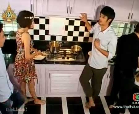 หลังจากนั่งพูดคุยกันมาพอสมควรแล้ว ดาราหนุ่มก็พาเหล่าพิธีกรเข้าครัว ที่ดูเหมือนจะไม่ค่อยได้ใช้ทำอาหารมากนัก เนื่องจากเป็นบ้านที่มีลูกชายทั้งหมด ทั้งนี้ หนุ่มบอยเล่าว่า ที่บ้านจะกินข้าวด้วยกันมื้อเดียวคือ มื้อเช้า ส่วนมื้อเย็นถ้าว่างตรงกันก็จะไปกินข้าวนอกบ้าน