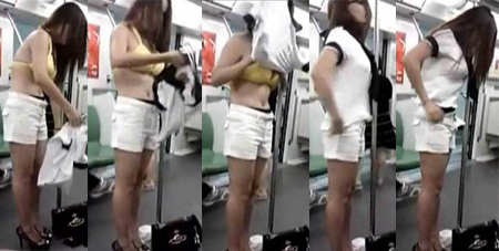 เดี๋ยวนี้ใคร ๆ ก็เริ่มนำความเป็นส่วนตัวขึ้นมาบนพื้นที่สาธารณะกันมากขึ้น ซึ่งเราพบเห็นได้ทั่วไปจากระบบขนส่งสาธารณะทั้งหลาย ที่เห็นกันแบบเบา ๆ ก็อย่างเล่นเกมส์ อ่านหนังสือ ฟังเพลง เสียบหูฟังสร้างโลกส่วนตัวแบบไม่สนใจใคร มากขึ้นหน่อยก็โทรศัพท์ (โดยเฉพาะพวกที่ชอบคุยเสียงดัง ๆ) หรือสาวบางรายก็ควักกระจกขึ้นมาแต่งหน้าแต่งตาทำผมกันบนรถเลยทีเดียว แต่คาดว่า ณ นาทีนี้คงไม่มีใครกล้าแรงเท่าอาหมวยจากแดนมังกรอีกแล้ว เพราะเธอเล่นเปลี่ยนโบกี้รถไฟฟ้าเป็นห้องแต่งตัวซะงั้น ถึงกับแก้ผ้าเปลี่ยนเสื้อกันตรงนั้นเลยทีเดียว โอ๊ย ช่างกล้า !