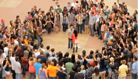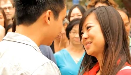 อยากกู่ร้องบอกรักให้ก้องโลก.... น่าจะเป็นคำนิยามการขอแต่งงานของคู่รักคู่นี้ได้เป็นอย่างดี ก็เพราะมีพ่อหนุ่มนักดนตรีชาวเวียดนามเชื้อสายอเมริกันผู้หนึ่ง จัด "แฟลชม็อบ" ขอแฟนสาวแต่งงาน กลางลานมหาวิทยาลัยเก่าแก่อย่างมหาวิทยาลัยแห่งแคลิฟอร์เนียลอสแอนเจลีส (UCLA)