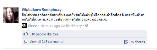 \'\'ของขวัญปีใหม่ปีนี้ ขอให้พี่เสกคนเดิมกลับมาเพื่อเป็นของขวัญปีใหม่ให้กับทุก ๆ คนที่เป็นแฟนคับ และอยากให้เพื่อน ๆ ให้กำลังใจ \'\'พี่เสก\'\' รัก \'\'พี่เสก\'\' อีกไม่นาน \'\'พี่เสก\'\' ก็จะกลับมาเป็น \'\'พี่เสก\'\' คนเดิมมาร้องเพลงให้พวกเราฟัง ทุกกำลังใจจะทำให้ \'\'พี่เสก\'\' ผ่านอุปสรรคทุกอย่าง.....ต่อจากนี้เราจะมีแต่สิ่งดี ๆ น๊ะค๊ะ การให้อภัยเป็นสิ่งที่งดงามเสมอค๊ะ.....ป้อมจะอยู่เคียงข้าง \'\'ศุขพิมาย\'\' ตลอดไป สู้น๊ะค๊ะ \'\'พี่เสก\'\' รักพี่...\'\'