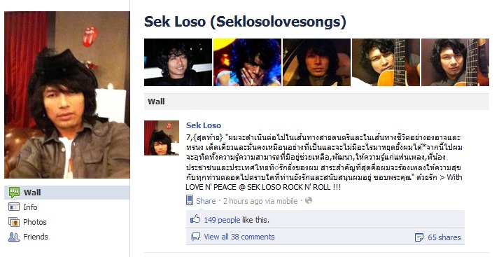 , เฟซบุ๊กเสก โลโซ : SEK LOSO THAILAND FANCLUB , เฟซบุ๊ก Sek Loso (Seklosolovesongs)