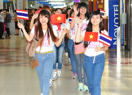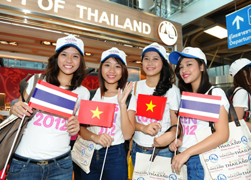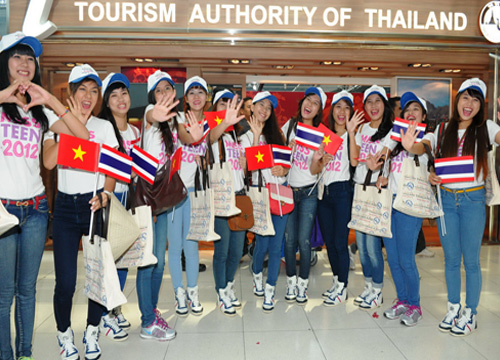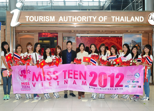 เดินทางถึงประเทศไทยแล้ว คณะ 12 สาวงาม Miss Teen Vietnam 2012 โดยมี คุณเกรียงกานต์ กาญจนะโภคิน ประธานเจ้าหน้าที่บริหารร่วม บริษัท อินเด็กซ์ ครีเอทีฟ วิลเลจ จำกัด (มหาชน) และ คุณจุฑาทิพย์ เจริญลาภ ผู้อำนวยการสำนักงานโฮจิมินห์ การท่องเที่ยวแห่งประเทศไทย (ททท.) ร่วมต้อนรับ เมื่อวันที่ 14 พฤศจิกายน 2555 เวลา 11.00 น. ที่ท่าอากาศยานสุวรรณภูมิ กรุงเทพฯ