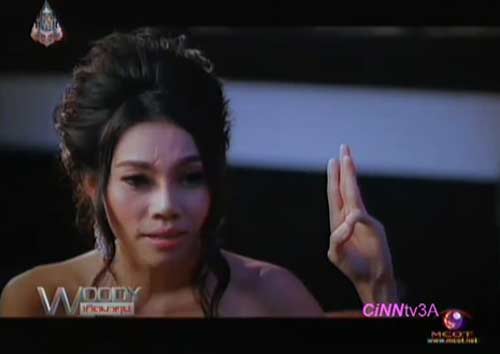 ส่วนเรื่องที่พจน์ อานนท์ ออกมาด่าตนนั้น ตนก็งงมาก เขาจะมาด่าตนทำไม แต่ถ้าบอกผ่านรายการได้ (เสียงสั่นเครือ) ตนอยากจะบอกว่า อยากให้พี่มารู้จักตัวตนที่แท้จริงของตนก่อน ตนไปทำอะไรพี่ถึงเกลียดตนนักเกลียดตนหนา ถึงกับกรวดน้ำคว่ำขันผ่านรายการ ก่อนหน้านี้ตนน่ะใฝ่ฝันว่าจะเดินไปหาพี่ แล้วบอกว่าหนูอยากเล่นหนังของพี่ อยากฝากตัวกับพี่เขา อยากเป็นลูกรักของเขา แต่พอเรื่องนี้ออกมา นี่หรือผู้ใหญ่ที่ตนเคยเคารพ (ร้องไห้) ตนอยากจะบอกว่า ตนแค่แรง ตนไม่ได้เลว อยากให้ทุกคนมานั่งตรงนี้ มารู้จักตัวตนที่แท้จริงของตนก่อน