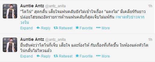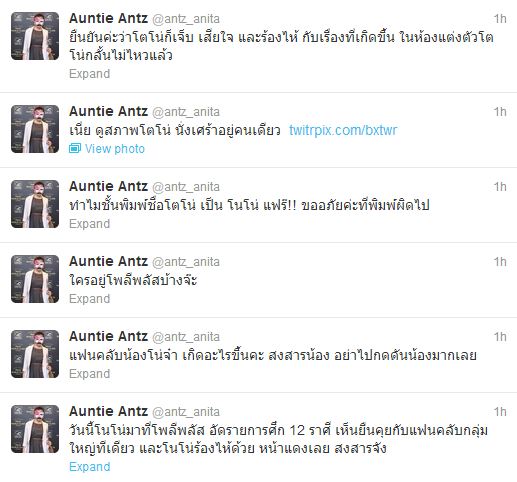 อย่างไรก็ตาม แม้นางเอกสาวจะออกมาขอโอกาสจากแฟนคลับแล้ว แต่กระแสแอนตี้ก็ยังไม่ลดลง จนทำให้หนุ่มโตโน่ต้องออกมาปกป้องดาราสาวเป็นระยะ โดยล่าสุดเมื่อช่วงบ่ายวันนี้ (9 กรกฎาคม) ได้มีทวีตจาก @antz_anita ผู้สื่อข่าวบันเทิง ระบุว่า วันนี้โตโน่มาอัดรายการ ศึก 12 ราศรี ที่โพลีพลัส เห็นยืนคุยกับแฟนคลับกลุ่มใหญ่ โตโน่ร้องไห้ด้วย ยืนยันว่าโตโน่ก็เจ็บ เสียใจ และร้องไห้กับเรื่องที่เกิดขึ้น ในห้องแต่งตัวคือโตโน่กลั้นไม่ไหวแล้ว จากนั้นก็ระบุพาดหัวข่าวจากวงในว่า "โตโน่ สุดกลั้น เสียใจแฟนคลับยังไม่เข้าใจเรื่อง แตงโม มีเคลียร์กันยาว ปล่อยโฮขณะอัดรายการ ด้านแฟนคลับก็สุดเจ็บไม่แพ้กัน" พร้อมระบุว่า กระแสจากแฟนคลับ มีทั้งที่เห็นใจและไม่เห็นใจกับเรื่องราวในครั้งนี้
