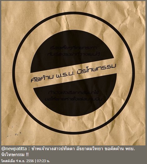 นิว ปทิตตา อัธยาตมวิทยา : ข้าพเจ้านางสาวปทิตตา อัธยาตมวิทยา ขอคัดค้าน พรบ. นิรโทษกรรม !!