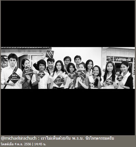 ไมเคิล ศิรชัช เจียรถาวร : เราไม่เห็นด้วยกับ พ.ร.บ. นิรโทษกรรมครับ