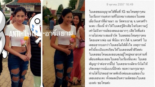 ใบเตย อาร์สยาม ขอโทษแล้ว เหตุใส่เสื้อเอวลอย-กางเกงขาดเข้าวัด