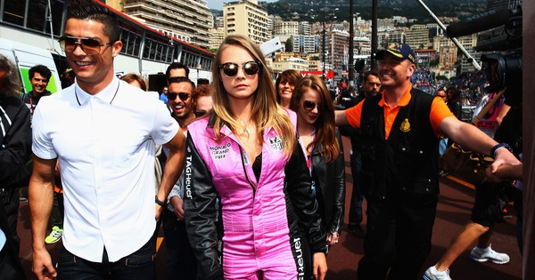 โรนัลโด้ ควง คาร่า เดอเลวีญ ชมแข่งรถ F1 โดนเม้าท์สนั่น คู่รักคู่ใหม่