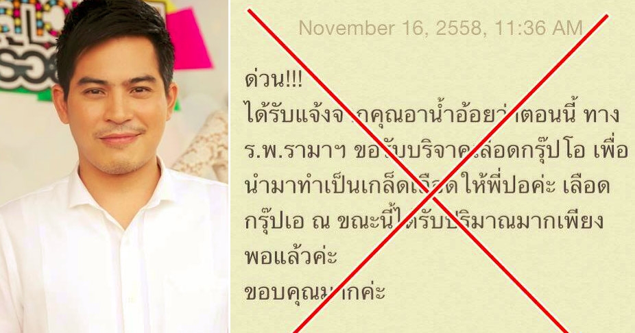 รพ.รามาฯ แจงยังไม่มีประกาศรับบริจาคเลือดรักษา ปอ ทฤษฎี