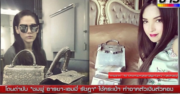 ดราม่า ! ชมพู่ อารยา-เอมมี่ รัชฎา ใช้กระเป๋าทำจากหนังตัวเงินตัวทอง !?