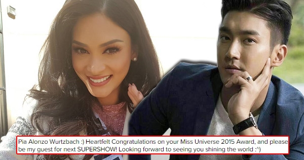 ซีวอน SJ โพสต์ยินดี Miss Universe 2015 ปิอา ตอบกลับอย่างปลื้ม !