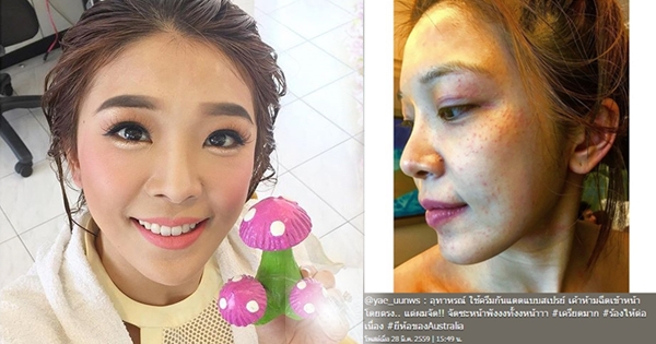 อุทาหรณ์ หญิงแย้ ฉีดสเปรย์กันแดดใส่หน้าโดยตรง ผลออกมาคือพัง !
