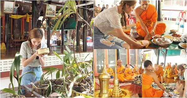 ขวัญ อุษามณี น้อมรับความผิด ใส่เสื้อซีทรูลูกไม้เอวลอยเข้าวัด