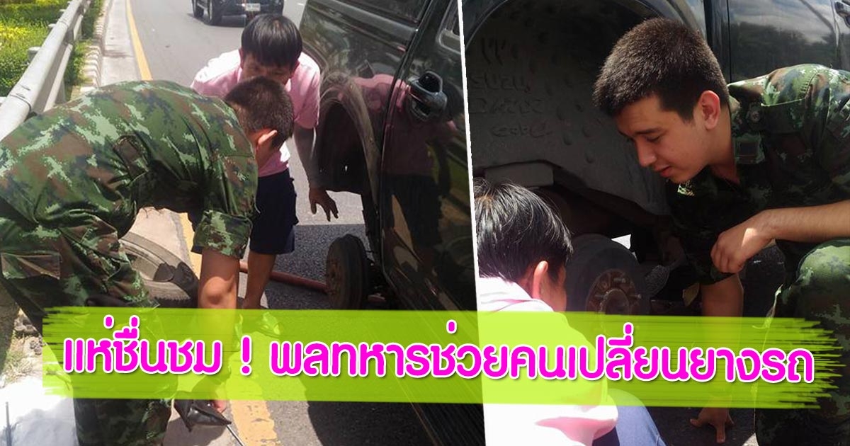 แห่ชื่นชม ! พลทหารช่วยคนเปลี่ยนยางรถ พอดูหน้าชัด ๆ ก็พบว่าเป็นดาราคนนี้นี่เอง