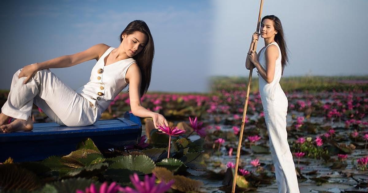 ญาญ่า อุรัสยา พายเรือชมทะเลบัวแดง สวยทั้งคน งามทั้งดอกไม้