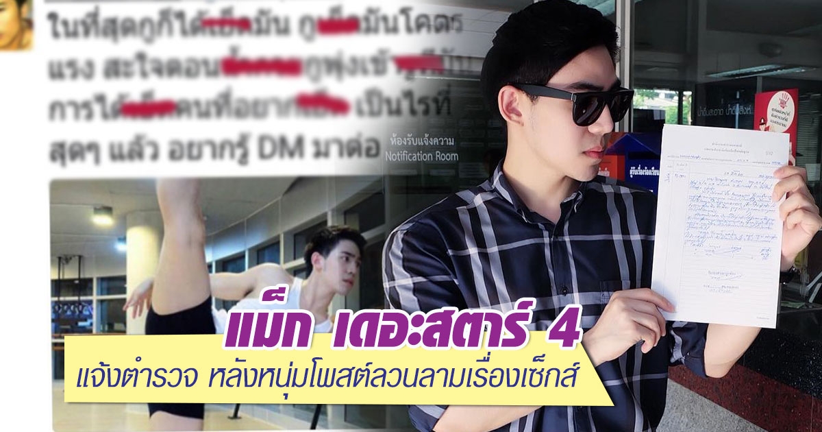 แม็ก เดอะสตาร์ 4 แจ้งตำรวจ หลังหนุ่มโพสต์ลวนลามเรื่องเซ็กส์ แอบอ้างได้กันกับผู้ชาย
