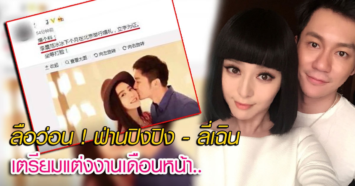 ลือว่อน ฟ่านปิงปิง - ลี่เฉิน เตรียมแต่งงานกันในเดือนหน้า จัดพิธีที่ปักกิ่ง