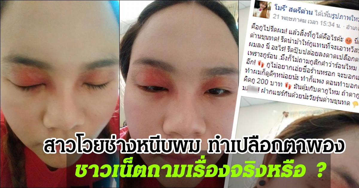 สาวโวย ช่างหนีบผมหน้าม้า ทำเปลือกตาพอง ชาวเน็ตถามเกิดขึ้นได้จริงหรือ ?