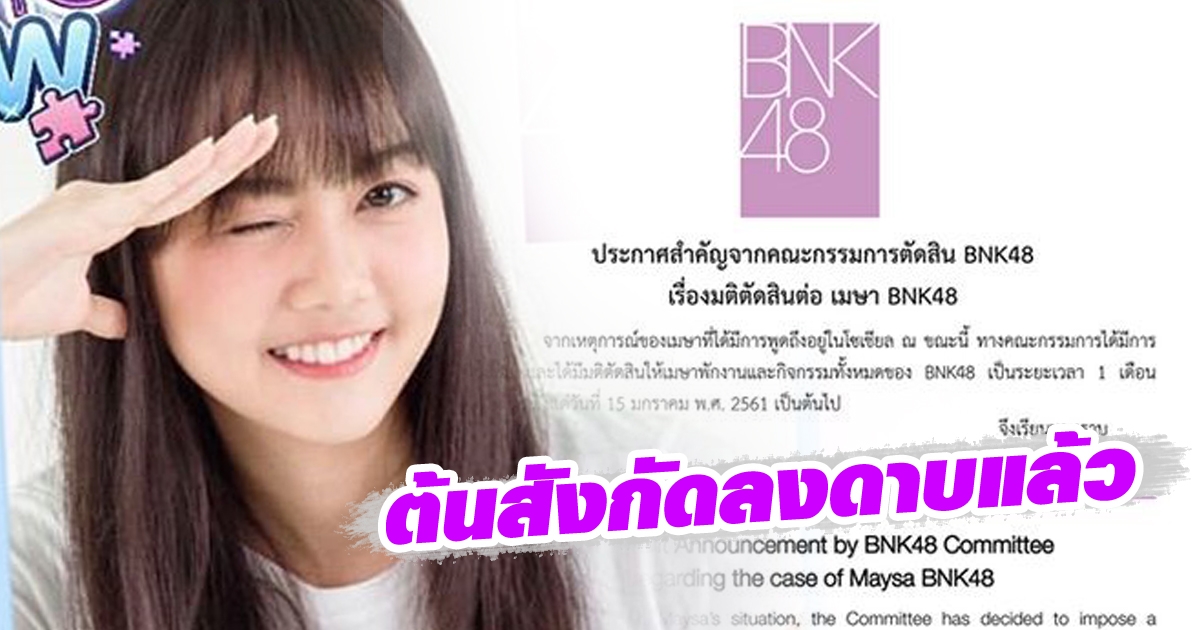 ต้นสังกัดลงดาบ เมษา BNK48 เจอสั่งพักงาน 1 เดือน หลังดราม่าถี่
