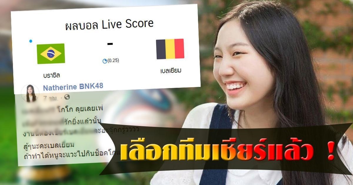 จับตา แนทเธอรีน BNK48 เลือกทีมเชียร์แล้ว บิ๊กแมตช์บอลโลก บราซิล-เบลเยียม คืนนี้