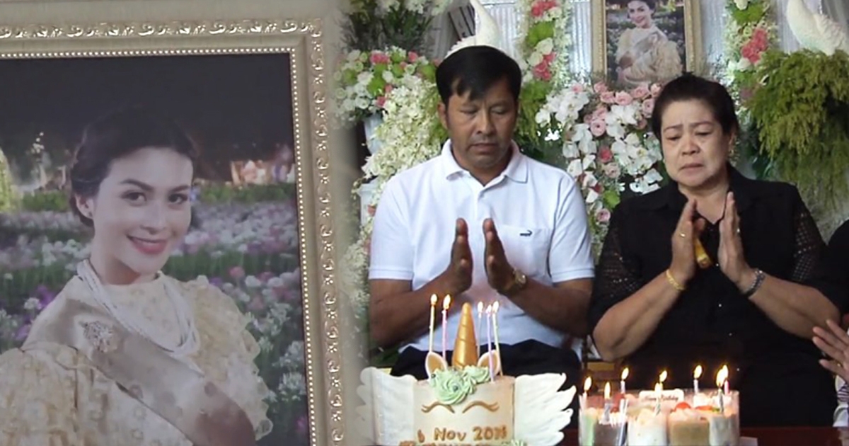ครอบครัวเศร้า.. ร้องเพลงเป่าเค้กวันเกิด จุ๋ม นุสรา ครบ 33 ปี หน้าโลงศพ