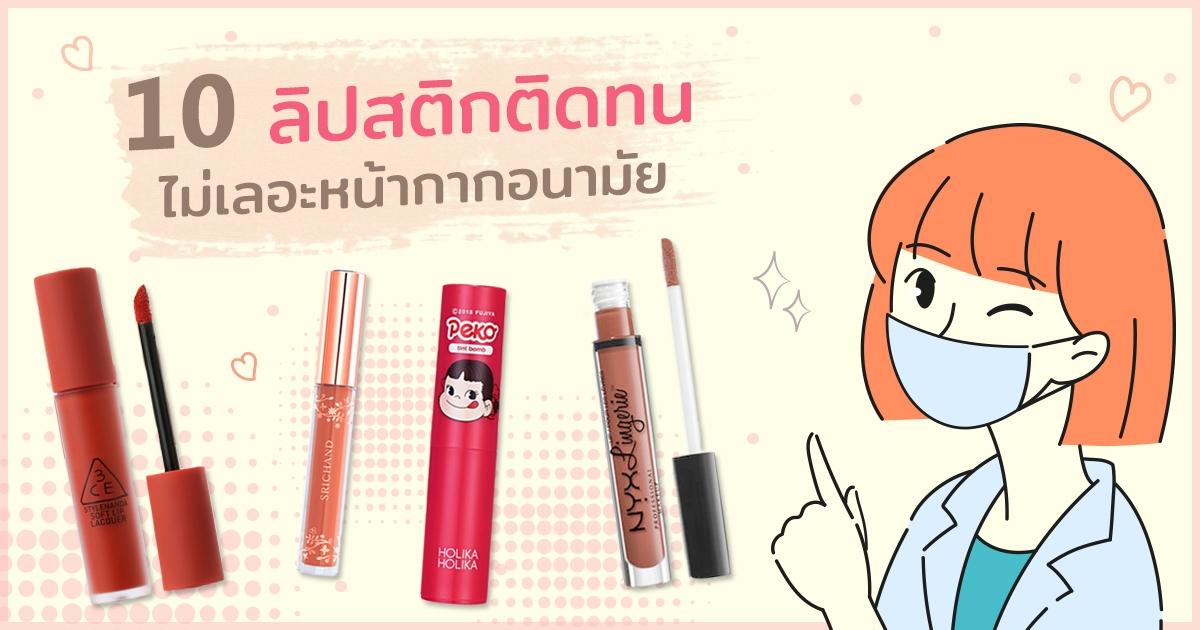 10 ลิปสติกติดทน ไม่เลอะหน้ากากอนามัย แถมสีสวยโดนใจ