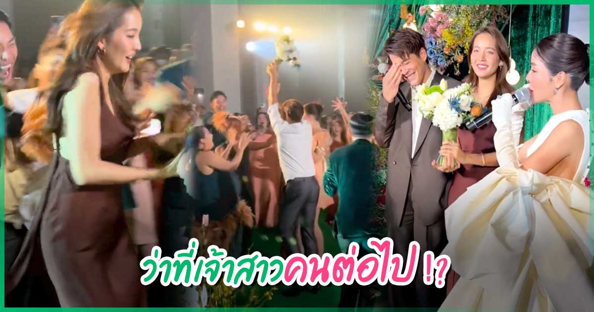 เปิดคลิปชอตคนได้ดอกได้งานแต่งงาน แอร์ ภัณฑิลา สุดพีค ป๋อมแป๋ม เทยเที่ยวไทย รับได้แต่วิ่งเอาไปให้ โบว์ เมลดา นาทีนี้มีคนอึ้ง ! หวานชื่นเลยทีเดียว สำหรับงานแต่งงานของ แอร์ ภัณฑิลา กับแฟนหนุ่มนอกวงการ ไอซ์ รัชชสิทธิ์ ที่จัดขึ้นเมื่อวันที่ 17 กรกฎาคม 2565 โดยมีเพื่อนพี่น้องคนในวงการบันเทิงไปร่วมแสดงความยินดีอย่างคับคั่ง และนอกจากความหวานของคู่บ่าวสาวอีกหนึ่งไฮท์ไลท์สำคัญของงานก็คือชอตโยนช่อดอกไม้ของเจ้าสาว เพราะเป็นเวลาที่คนโสดหลายคนรอคอย ซึ่งก็มีดาราคนดังออกมารอรับเพียบ และผู้โชคดีคนนั้นก็คือพิธีกรดัง ป๋อมแป๋ม เทยเที่ยวไทย หรือ ป๋อมแป๋ม นิติ ที่ยื้อแย่งกับสาว ๆ คนอื่นจนได้มาครอง แต่ความพีคคือเมื่อคว้าสำเร็จ ป๋อมแป๋ม กลับวิ่งเอาช่อดอกไม้ไปยัดใส่นางเอกสาว โบว์ เมลดา และพาตัวสาวโบว์ไปส่งให้ถึงหน้าเวที เล่นเอาคนเฮกันทั้งงาน ส่วนทางด้านแฟนหนุ่มอย่าง อาเล็ก ธีรเดช ที่ไปร่วมงานด้วยก็อึ้งสุด ๆ ก่อนจะโดนเชิญขึ้นเวทีไปทั้งคู่เพื่ออวยพรให้คู่บ่าวสาว งานนี้เล่นเอาคู่รักคู่หวานถึงกับไปไม่เป็นกันเลย จนเหล่าดาราในงานตะโกนเชียร์กันไม่หยุด ซึ่งทั้งสาวโบว์และหนุ่มอาเล็กก็เขินสุด ๆ เมื่อโดนแซวว่าจะเป็นคู่บ่าวสาวคู่ต่อไป ด้านแฟนคลับก็เข้ามาชงมาเชียร์กันหนักมากไม่แพ้กัน