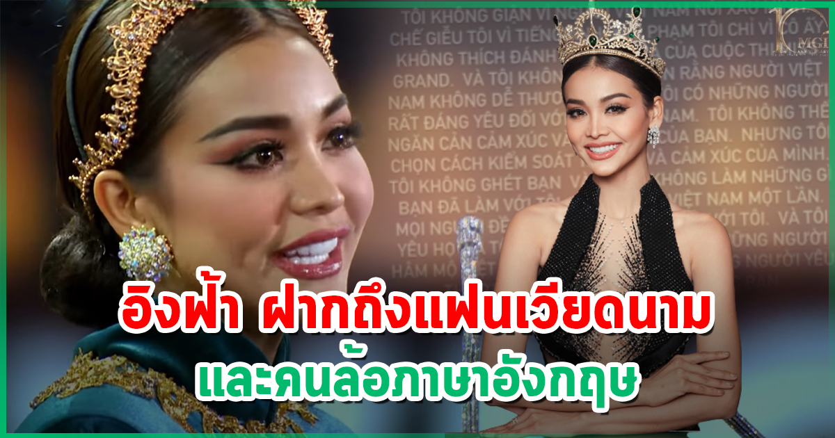 อิงฟ้า ว่าแบบนี้ หลังถูกล้อเรื่องภาษาอังกฤษ พูดไม่ชัดบนเวทีมิสแกรนด์ พร้อมฝากถึงแฟนเวียดนาม