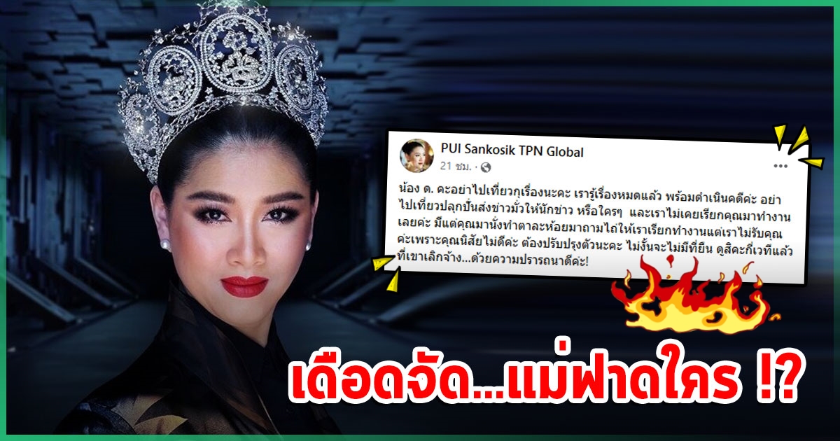 ปุ้ย ปิยาภรณ์ TPN ไม่ทน ผุดอักษรย่อฟาดแรง ซัด น้อง ด. อย่าเที่ยวกุเรื่อง ระวังจะไม่มีที่ยืนบนเวทีนางงาม เล่นเอาแฟนนางงาม ขาเมาท์ ขาเผือก แตกตื่นกันไม่ไหว เมื่อล่าสุด (23 สิงหาคม 2566) ปุ้ย ปิยาภรณ์ แสนโกศิก กรรมการผู้จัดการบริษัท ทีพีเอ็น โกลบอล จำกัด (TPN Global) ผู้ถือลิขสิทธิ์เวทีมิสยูนิเวิร์สไทยแลนด์ ได้ออกมาฟาดบุคคลปริศนารายหนึ่งกลางเฟซบุ๊ก โดย แม่ปุ้ย TPN ได้โพสต์ระบุว่า "น้อง ด. คะอย่าไปเที่ยวกุเรื่องนะคะ เรารู้เรื่องหมดแล้ว พร้อมดำเนินคดีค่ะ อย่าไปเที่ยวปลุกปั่นส่งข่าวมั่วให้นักข่าว หรือใคร ๆ และเราไม่เคยเรียกคุณมาทำงานเลยค่ะ มีแต่คุณมานั่งทำตาละห้อยมาถามไถ่ให้เราเรียกทำงาน แต่เราไม่รับคุณค่ะเพราะคุณนิสัยไม่ดีค่ะ ต้องปรับปรุงตัวนะคะ ไม่งั้นจะไม่มีที่ยืน ดูสิคะกี่เวทีแล้วที่เขาเลิกจ้าง…ด้วยความปรารถนาดีค่ะ !" งานนี้เล่นเอาแฟน ๆ นางงาม และขาเผือกเมาท์กันสะบัดว่า แม่ปุ้ย สื่อถึงใคร และ น้อง ด. ที่ว่านั้นคือใคร นอกจากนี้ ยังพากันโยงไปถึงกรณีที่ มารีญา พูนเลิศลาภ Miss Universe Thailand 2017 ถูกมือดีโพสต์ปล่อยเฟกนิวส์ว่าเธอได้พูดถึงเรื่อง "การล็อกมง" ในการประกวด Miss Universe Thailand 2023 ที่ผ่านมา ซึ่งมารีญาได้ออกมาชี้แจงแล้วว่าไม่เป็นความจริง ส่วน น้อง ด. จะเป็นใคร ก็คงต้องจับตามองกันแล้วล่ะค่ะ