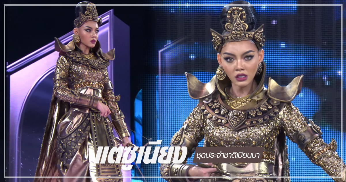 แตซูเนียง มิสแกรนด์เมียนมา กับชุดนักรบของกษัตรีโบราณที่ว่ากันว่านี่คือชุดจริง ที่ดูดุดัน น่าเกรงขาม จนขนลุก บนเวที Miss Grand International 2024 แตซูเนียง (Thae Su Nyein) มิสแกรนด์เมียนมา 2024 (Miss Grand Myanmar 2024) วัย 18 ปี กับ ชุดประจำชาติเมียนมา ชุดนักรบของกษัตรีโบราณ จากพระราชินีปานทวา ของเมืองเบตะโน่ แห่ง นครรัฐปยู อิสตรีในตำนานของเมียนมา มีชื่อเสียงด้านการรบและความกล้าหาญ และว่ากันว่านี่คือชุดจริง โดย แตซูเนียง พรีเซ็นต์ออกมาได้ดุดัน น่าเกรงขาม ทำถึง มาจากอินเนอร์จริง ๆ จนขนลุก ภาพจาก YouTube / GrandTV