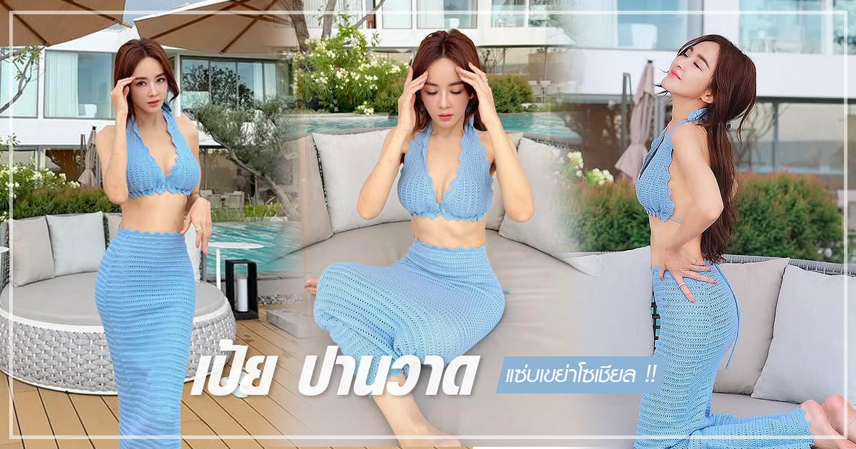 เป้ย ปานวาด ส่งท้ายทริปสงกรานต์ตามวิถีซุปตาร์ หลังสลัดผ้า สวมทูพีซสีฟ้าสดใส ที่แอบเผยให้เห็นอกอึ๋มเบา ๆ พร้อมโพสท่าแชะภาพริมสระว่ายน้ำชะอำ ก่อนทำแฟนคลับ เป้ย ปานวาด เข้ามากดไลก์ไม่วางมือ ภาพจาก Instagram @ppanward