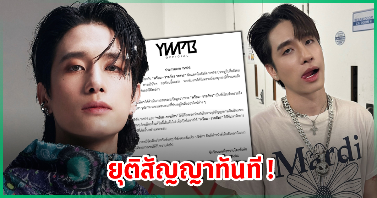 ต้นสังกัด พร้อม ราชภัทร ประกาศยุติสัญญาการเป็นนักแสดงทันที เซ่นพิษข่าววีรกรรมฉาว หลังถูกแฉจนเป็นข่าวร้อนกระฉ่อนโซเชียล กำลังเป็นประเด็นร้อน ๆ ในโซเชียลขณะนี้เลยทีเดียว สำหรับ พร้อม ราชภัทร พระเอกซีรีส์วาย จากซีรีส์ HOMEROOM 29 ตัวประกัน, Jack & Joker ทำไมต้องเป็นเธอทุกที, เพื่อนผมมีมรดกเป็นโฮมสเตย์ครับ ฯลฯ หลังถูกสาวปริศนาออกมาแฉถึงพฤติกรรมฉาว ทั้งไม่ใส่ถุงยางอนามัย ทำผู้หญิงท้องแต่ไล่ให้ไปทำแท้ง ฯลฯ จนถูกวิจารณ์อย่างหนัก ซึ่งก็มีทั้งคนเชื่อและไม่เชื่อว่าเป็นความจริงหรือไม่ ล่าสุด (15 มิถุนายน 2568) YWPB ต้นสังกัดของ พร้อม ราชภัทร ได้ออกมาเคลื่อนไหวหลังเป็นประเด็นร้อน โดยได้ประกาศยุติสัญญาของนักแสดงหนุ่มตั้งแต่วันนี้เป็นต้นไป ท่ามกลางความตกใจของแฟน ๆ "ตามที่มีประเด็นเกี่ยวกับ "พร้อม ราชภัทร วรสาร" นักแสดงในสังกัด YWPB ปรากฏในสื่อสังคมออนไลน์ในขณะนี้ ทางบริษัทฯ ขอเรียนชี้แจงว่า ทางทีมงานได้รับทราบถึงเหตุการณ์ทั้งหมดแล้วและมิได้นิ่งนอนใจต่อกรณีดังกล่าว เบื้องต้น บริษัทฯ ได้ดำเนินการสอบถามข้อมูลจากทาง "พร้อม ราชภัทร" เป็นที่เรียบร้อย รวมถึงตรวจสอบเนื้อหา รูปภาพ และบทสนทนาที่ปรากฏในสื่อออนไลน์ต่าง ๆ ทั้งนี้ บริษัท YWPB และ "พร้อม ราชภัทร" ได้มีข้อตกลงร่วมกันในการยุติสัญญาการเป็นนักแสดงในสังกัด YWPB โดยมีผลตั้งแต่วันนี้เป็นต้นไป เพื่อเปิดโอกาสให้ "พร้อม ราชภัทร" ได้ไช้เวลาจัดการกับเหตุการณ์ที่เกิดขึ้นอย่างเหมาะสม หากในอนาคตมีข้อเท็จจริงหรือข้อสรุปที่ชัดเจนเพิ่มเติม บริษัทฯ ยินดีทำหน้าที่เป็นตัวกลางในการแจ้งข้อมูลให้สาธารณชนได้รับทราบต่อไป" ขณะที่แฟน ๆ ต่างก็ตกใจกับเรื่องที่เกิดขึ้น และให้กำลังใจกับทางต้นสังกัด บางส่วนยังแสดงความคิดเห็นให้กำลังใจ พร้อม ขอให้เจ้าตัวออกมาชี้แจงและแก้ปัญหาเรื่องที่เกิดขึ้นให้มีทางออกที่ดีขึ้นด้วย