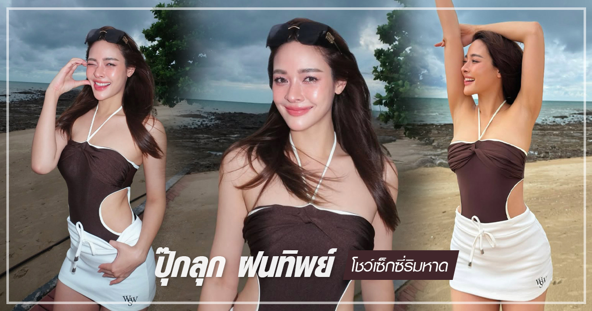 ปุ๊กลุก ฝนทิพย์ สาดซีนแซ่บเบา ๆ ในชุดว่ายน้ำวันพีซเว้าเอวด้านข้าง เผยผิวขาวเนียนและหุ่นเป๊ะปัง ระหว่างรับแสงอาทิตย์ยามเย็นริมชายหาดพัทยา ก่อนทำแฟนคลับ ปุ๊กลุก ฝนทิพย์ กรี๊ดกร๊าดกันเต็มโซเชียล ภาพจาก Instagram @pooklook_fonthip