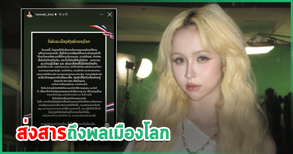 แฮนน่า 4EVE สาวลูกครึ่งลาว-อเมริกัน โพสต์แสดงจุดยืนเคียงข้างคนไทย ใช้ภาษาลาวเป็นกระบอกเสียงร่วมประณามการกระทำไร้มนุษยธรรมของกัมพูชา ยังเป็นประเด็นร้อนที่สังคมเฝ้าจับตาอย่างใกล้ชิด สำหรับสถานการณ์บริเวณชายแดนไทย-กัมพูชา ท่ามกลางความไม่สงบนี้ ได้มีเหล่าคนบันเทิงเริ่มออกมาเคลื่อนไหวส่งเสียงและส่งกำลังใจให้กับผู้ได้รับผลกระทบกับเหตุการณ์ดังกล่าว วันที่ 26 กรกฎาคม 2568 หนึ่งในนั้นคือ แฮนน่า โรสเซ็นบรูม หรือ แฮนน่า 4EVE ศิลปินสาวลูกครึ่งลาว-อเมริกัน ได้ออกมาโพสต์ข้อความเป็นภาษาลาว เพื่อสื่อสารไปถึงผู้คนในวงกว้าง โดยคำแปลมีใจความว่า… "ถึงพลเมืองโลกทุกคนเกี่ยวกับสถานการณ์ ไทย-กัมพูชา ข้อความว่า ตลอดระยะเวลาที่ผ่านมา ทหารไทยยึดมั่นในเส้นทางสันติภาพและใช้การเจรจาทางการทูตเป็นพื้นฐาน ความอดทนและความพยายามของเรากลับถูกเพิกเฉย และตอบโต้ด้วยความโหดร้าย กัมพูชายังคงละเมิดอธิปไตยของเราครั้งแล้วครั้งเล่า โดยทั้งหมดนี้ถูกขับเคลื่อนโดยฮุน เซน เพื่อเป้าหมายทางการเมืองของเขาเอง เราขอยืนยันว่าคนไทยรักสันติและไม่ต้องการความรุนแรง อย่างไรก็ตาม เมื่ออำนาจอธิปไตยของชาติถูกคุกคามและชีวิตของเพื่อนร่วมชาติตกอยู่ในความเสี่ยง เราจำเป็นต้องลุกขึ้นยืนและปกป้องแผ่นดินของเรา เราหวังว่ามิตรสหายทั่วโลกจะมองข้ามเกมการเมือง และเหตุการณ์ต่างๆ เพื่อมองเห็นความจริงเบื้องหลังสิ่งที่เกิดขึ้น โปรดช่วยเราเป็นกระบอกเสียง และประณามการกระทำไร้มนุษยธรรมนี้ เพราะไม่เพียงเป็นภัยคุกคามต่อประเทศไทยเท่านั้น แต่ยังเป็นภัยคุกคามต่อจิตสำนึกและสันติภาพของภูมิภาคโดยรวมอีกด้วย…" ด้านชาวเน็ตทั้งไทยและต่างชาติ โดยเฉพาะผู้ใช้ภาษาลาวต่างพากันแชร์ต่อ พร้อมชื่นชมแฮนน่าในฐานะศิลปินที่กล้าแสดงจุดยืน และเป็นอีกหนึ่งกระบอกเสียงสำคัญที่ช่วยสื่อสารข้อเท็จจริงออกไปเป็นวงกว้าง ข้อมูลจาก อินสตาแกรม hannah_kmz