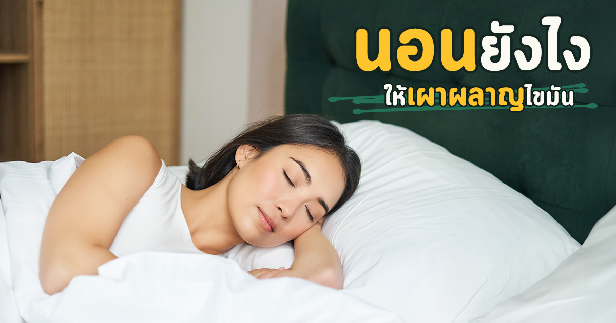 เผาผลาญไขมันได้ด้วยการนอนหลับให้มีคุณภาพ การนอนช่วยเผาผลาญได้ยังไง และต้องนอนยังไงถึงสุขภาพดี เรามีคำตอบมาฝาก ใคร ๆ ก็รู้ดีว่าการเผาผลาญไขมันที่ดีและรวดเร็วคือการออกกำลังกาย แต่หลายคนก็มักมีข้ออ้างว่าไม่มีเวลา ทำงานหนัก เหนื่อย เพราะไลฟ์สไตล์ที่รีบเร่งทำให้พอกลับถึงบ้านปุ๊บก็หมดแรง อยากจะพักผ่อนให้เต็มที่ ดังนั้นเรามาเปลี่ยนการนอนหลับให้มีคุณภาพดีกว่า เนื่องจากการนอนช่วยเผาผลาญได้ มาดูกันว่าต้องทำยังไงถึงจะได้ทั้งสุขภาพที่ดี แถมควบคุมน้ำหนักได้ด้วย การนอนหลับมีบทบาทสำคัญในการควบคุมการเผาผลาญและการจัดการน้ำหนักของร่างกาย เพราะไม่เพียงแต่ช่วยให้ร่างกายฟื้นฟู แต่ยังส่งผลต่อฮอร์โมนที่ควบคุมความหิวและความอิ่ม เช่น เลปตินและเกรลิน ดังนั้นการนอนหลับที่เพียงพอสามารถช่วยลดความอยากอาหารและเพิ่มการเผาผลาญพลังงานได้ การเผาผลาญแคลอรีขณะนอนหลับขึ้นอยู่กับหลายปัจจัย เช่น น้ำหนักตัว เพศ อายุ และมวลกล้ามเนื้อ โดยเฉลี่ยแล้ว ร่างกายจะเผาผลาญแคลอรีประมาณ 40 – 55 แคลอรีต่อชั่วโมงในระหว่างการนอนหลับ ดังนั้น หากนอนหลับ 8 ชั่วโมง จะเผาผลาญได้ประมาณ 320 – 440 แคลอรี ยิ่งคนที่มีน้ำหนักตัวมากก็จะยิ่งเผาผลาญแคลอรีได้มากขึ้น โดยอาจถึง 91 แคลอรีต่อชั่วโมง หรือประมาณ 728 แคลอรีใน 8 ชั่วโมง อย่างไรก็ตาม ตัวเลขเหล่านี้เป็นการประมาณการทั่วไป และอาจแตกต่างกันไปตามปัจจัยส่วนบุคคล ในขณะที่เรานอนหลับ ร่างกายจะเข้าสู่กระบวนการฟื้นฟูและซ่อมแซมเซลล์ต่าง ๆ ในช่วงที่นอนหลับลึก (Slow-Wave Sleep) การเผาผลาญจะลดลงเพื่อประหยัดพลังงาน แต่ในช่วง REM (Rapid Eye Movement) การเผาผลาญจะเพิ่มขึ้นเล็กน้อย นอกจากนี้ การนอนหลับยังช่วยควบคุมระดับฮอร์โมนที่เกี่ยวข้องกับความหิวและการเผาผลาญ เช่น การเพิ่มขึ้นของเลปตินและการลดลงของเกรลิน มาถึงตรงนี้แล้วเชื่อว่าหลายคนอยากรู้ว่า แล้วจะนอนหลับยังไงให้เผาผลาญไขมันได้อย่างมีประสิทธิภาพ ซึ่งสามารถทำได้ดังนี้ค่ การนอนหลับที่เพียงพอช่วยให้ร่างกายฟื้นฟูและควบคุมฮอร์โมนที่เกี่ยวข้องกับความหิวและการเผาผลาญได้อย่างมีประสิทธิภาพ การรักษาตารางเวลานอนที่สม่ำเสมอจะช่วยปรับปรุงคุณภาพการนอนและส่งผลดีต่อการเผาผลาญพลังงาน คาเฟอีนและแอลกอฮอล์จะไปรบกวนคุณภาพการนอนและส่งผลเสียต่อการเผาผลาญพลังงาน ทำให้เผาผลาญพลังงานได้น้อยลง การนอนในห้องที่เย็นสามารถกระตุ้นการทำงานของไขมันสีน้ำตาล (Brown Fat) ซึ่งช่วยเผาผลาญแคลอรีได้ การกินอาหารหนักก่อนนอนจะทำให้ร่างกายต้องใช้เวลาย่อย จึงไปรบกวนการนอนและกระบวนกา