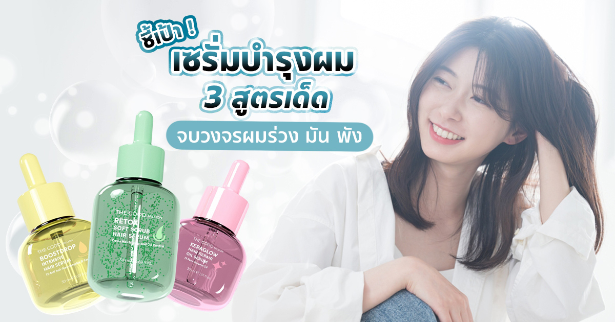 ผมเสีย ใครว่าเป็นเรื่องเล็ก ? ทั้งปัญหาหัวมันเยิ้มจนเสียบุคลิก ผมร่วงเต็มพื้นจนใจเสีย แถมบางคนปลายผมยังแห้งกรังเหมือนไม้กวาด แก้ยังไงก็ไม่จบสักที วันนี้เลยมาบอกต่อเซรั่มบำรุงผม The Good Million ที่จะช่วยฟื้นฟูเส้นผมได้ตั้งแต่โคนจรดปลาย พร้อมกู้ผมพังให้กลับมาสวยสุขภาพดีกัน เคยเป็นไหม ? ตื่นเช้ามาสระผมเป่าไดร์อย่างดี แต่พอตกบ่ายหนังศีรษะก็เริ่มเยิ้มจนผมลีบแบนติดหัวทุกที บางคนผมขาดหลุดร่วงเต็มกำมือจนนึกว่าตัวเองทำฟาร์มพรมบนพื้นห้อง ไหนจะปัญหาปลายผมที่แห้งกรัง สางทีไรก็นึกว่าไม้กวาด กับอีกสารพัดปัญหาเส้นผมที่ทำให้หลายคนท้อใจ ครั้นจะเข้าซาลอนบ่อย ๆ งบก็บานปลาย แต่ถ้าปล่อยไว้ผมก็อาจพังจนกู่ไม่กลับ ซึ่งปัญหาที่กำลังเจอเหล่านี้ บอกเลยว่าบางทีสาเหตุมันอาจจะไม่ได้อยู่ที่แชมพู แต่อยู่ที่เราบำรุงไม่ครบมิติต่างหาก วันนี้เราจึงขอมาแนะนำไอเทมเด็ด เซรั่มบำรุงผม 3 สูตรเด็ดจาก The Good Million ที่คัดสารสกัดและสารบำรุงผมแบบเน้นๆ เพื่อจบทุกปัญหาผมตั้งแต่หนังศีรษะ โคนผม ไปจนถึงปลายผม ว่าแล้วใครมีปัญหาแบบไหน มาดูเซรั่มที่เหมาะกับคุณกันเลย ใครที่มีปัญหาผมมัน บอกเลยว่าหยุดประโคมแชมพูแรง ๆ ที่ทำให้หนังศีรษะยิ่งแห้งตึงแล้วหันมาดีท็อกซ์ด้วยเซรั่มบำรุงผมสูตร Retox Soft Scrub ตัวนี้กัน บอกเลยว่าเป็นเซรั่มสครับที่เม็ดบีดนุ่มมาก แถมไม่บาดผิว โดยจะเข้าไปช่วยดีท็อกซ์หนังศีรษะให้สะอาดหมดจด ลดความมันที่ต้นตอ พร้อมเติมสารอาหารให้รากผมไปในตัว หลังใช้จะรู้สึกได้ว่าหนังศีรษะเบาหวิว และสะอาดสดชื่น ที่สำคัญผมไม่มันระหว่างวันด้วย ใครที่ผมร่วงเยอะมาก หวีผมทีไรผมหลุดติดมือมาเป็นกระจุก แนะนำเซรั่มบำรุงผมสูตร Boost Drop ที่ออกแบบมาเพื่อโคนผมโดยเฉพาะ โดยเซรั่มจะเข้าไปช่วยเสริมการงอกใหม่ของเส้นผม ให้ผมที่ขึ้นใหม่ดูหนาขึ้น แข็งแรง และเงางามมีสุขภาพดีจากภายใน ความรู้สึกหลังใช้คือผมจะมีวอลลุ่มขึ้น ไม่ดูลีบแบนติดหัว และผมร่วงน้อยลงอย่างเห็นได้ชัด ใครอยากมีผมดูหนาสุขภาพดี แนะนำให้หยดเซรั่มตัวนี้เป็นประจำได้เลย เส้นผมแห้งเสีย แตกปลาย และขาดง่าย อีกหนึ่งปัญหาที่หลายคนหนักใจ แนะนำให้กู้ชีพปลายผมด้วยเซรั่มบำรุงผมสูตร Kera Glow ออยล์เซรั่มสูตรล้ำลึกจากประเทศเกาหลี ตัวนี้เรียกได้ว่ารวมออยล์ไว้มากถึง 13 ชนิด เพื่อเข้าไปช่วยเชื่อมแกนผมที่ขาดให้กลับมาแข็งแรงและปิดเกร็ดผมให้เรียบลื่นในทันที ที่สำคัญคือซึมไวมาก ลืมภาพออยล์เหนียวเหนอะหนะแบบเดิมไปได้เลย หลังใช้จะรู้สึกได้ว่าผมนุ่มสลวย เงางามเหมือนนางแบบในโฆษณาเชียวนะ เข้าใจว่าเวล