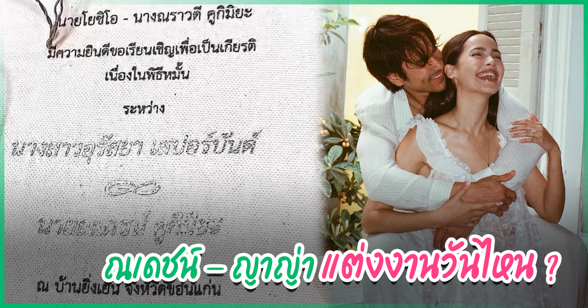 แม่แก้ว แกะการ์ดงานแต่ง ณเดชน์ คูกิมิยะ - ญาญ่า อุรัสยา ซูมชุด ๆ เข้าประตูวิวาห์วันไหน พร้อมเผยสถานที่แต่งงานสวน ? หลังจากที่ก่อนหน้านี้ แม่แก้ว ได้เปิดเผยสถานที่แต่งงานของคู่รักซุปตาร์ ณเดชน์ คูกิมิยะ และ ญาญ่า อุรัสยา ที่ จ.ขอนแก่น ณ บ้านสวนยิ่งเย็น ซึ่งเป็นบ้านสวนของฝ่ายชาย โดยงานแต่งงาน ณเดชน์ คูกิมิยะ และ ญาญ่า อุรัสยา ที่ จ.ขอนแก่น จะเป็นที่แรก จัดเป็นพิธีเล็ก ๆ พิธีตามประเพณีอีสานอย่าง บายศรีสู่ขวัญ ผูกข้อไม้ข้อมือ และมีเพียงผู้หลักผู้ใหญ่ที่นับถือมาร่วมงาน ซึ่ง ณเดชน์ ได้ลงพื้นที่ไปตรวจเช็กความพร้อมด้วยตัวเอง โดยบรรยากาศรายล้อมไปด้วยทุ่งข้าวเขียวขจี และต้นไม้สุดร่มรื่น ล่าสุด (19 มีนาคม 2569) แม่แก้ว ยังได้แกะการงานแต่งงานของ ณเดชน์ และ ญาญ่า โชว์ให้แฟน ๆ ได้ชมกันด้วย พร้อมบอกว่า "ร่วมเปิดการ์ดงานแต่งณเดชน์ญาญ่านำกันกับแม่เด้อ…จ้า…@kugimiyas @urassayas" ซึ่งงานแต่งงานของทั้งคู่ก็ได้ฤกษ์ดี โดยจะจัดขึ้นในวันที่ 17 เมษายน 2569 และจัดเริ่มพิธีในเวลา 08.09 น. นั่นเอง ทั้งนี้ หลังจัดงานแต่งงานที่ จ.ขอนแก่น แล้ว ณเดชน์ และ ญาญ่า จะลัดฟ้าไปจัดงานแต่งที่ประเทศนอร์เวย์ บ้านเกิดของฝ่ายหญิงต่อทันที และปิดท้ายด้วยงานฉลองใหญ่ที่ จ.กรุงเทพมหานคร ซึ่งจะจัดในช่วงครึ่งปีหลัง