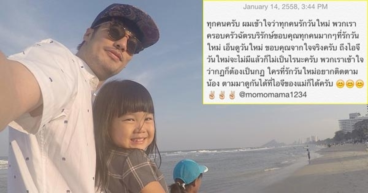 และก่อนที่จะมีดราม่าหนักกว่านี้ ล่าสุด (14 มกราคม 2558) พระเอกหนุ่ม บอย ปกรณ์ ก็ได้ออกมาโพสต์ข้อความลงในอินสตาแกรมของตัวเองโดยระบุว่า "ทุกคนครับ ผมเข้าใจว่าทุกคนรักวันใหม่ พวกเราครอบครัวฉัตรบริรักษ์ขอบคุณทุกคนมาก ๆ ที่รักวันใหม่ เอ็นดูวันใหม่ ขอบคุณจากใจจริงครับ ถึงไอจีวันใหม่จะไม่มีแล้วก็ไม่เป็นไรนะครับ พวกเราเข้าใจว่ากฏก็ต้องเป็นกฏ ใครที่รักวันใหม่อยากติดตามน้อง ตามมาดูกันได้ที่ไอจีของแม่ก็ได้ครับ @momomama1234"