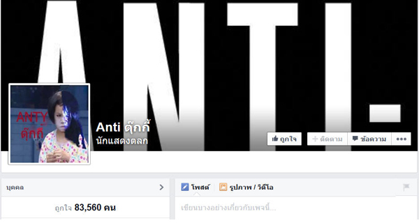 แอบรู้สึกสงสารนักแสดงตลกสาวซุปตาร์ ตุ๊กกี้ ชิงร้อยชิงล้าน เบา ๆ เพราะว่าล่าสุด (31 มกราคม 2558) แอบเข้าไปส่อง เฟซบุ๊ก Anti ตุ๊กกี้ ก็ต้องตกใจกับยอดการถูกใจกดติดตามเพจแอนตี้สาวตุ๊กกี้เพจนี้ของชาวเน็ตที่ตอนนี้ปาไปถึง 82,960 คนแล้วล่ะ เรียกได้ว่าอีกนิดเดียวก็จะทะลุแสนอยู่แล้ว งานนี้บอกเลยว่าคนไทยรักแรงเกลียดแรงจริง ๆ