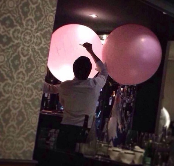โดยในภาพเผยให้เห็น ณเดชน์ ญาญ่า กำลังนั่งรับประทานอาหารกันอยู่ โดยสาวญาญ่า กำลังส่งยิ้มแป้นให้กับลูกโป่งลูกยักษ์สีชมพูที่มีข้อความว่า "Happy Valentine" ดูน่ารักและเหมาะสมกันมาก ๆ