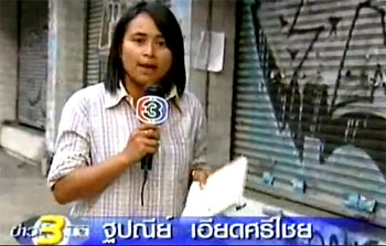 ฐปนีย์ : บางทีเราไปทำข่าวตามสถานที่ต่าง ๆ แต่คุณลุง คุณป้า คุณน้า คุณอา ก็มาขอถ่ายรูปจนบางทีเราไม่ได้ทำข่าว และบางทีเราต้องทำงานแข่งกับเวลา แหล่งข่าวเราจะไปแล้วเนี่ย แต่เรายังไม่ได้สัมภาษณ์ก่อนเลย บางทีเราก็เกรงใจเขา เดี๋ยวเขาจะหาว่าเราหยิ่ง ก็เลยลำบากในการทำงาน หรือการไปหาข้อมูลมันก็ยากขึ้น บางทีเข้าไปคนเห็นเราแล้วจำได้ก็กลัวก็หนีไม่กล้าพูด ก็ต้องมีวิธีการมีลูกล่อลูกซน แต่บางทีก็สะดวกสำหรับคนที่กล้าเปิดเผย แต่เราก็มีความสุขกับการทำข่าวที่นี่ เพราะเราได้ทำอะไรหลาย ๆ อย่าง บางทีได้ช่วยคนอื่นช่วยแก้ปัญหาให้เขา