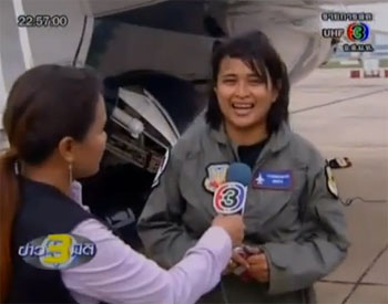 ฐปนีย์ : ซึ่งพอคนเริ่มเห็นข่าวและเห็นเราลงพื้นที่ทำให้เขาได้เห็นความพยายามของการ ทำข่าวชิ้นหนึ่งว่าไม่ใช่ง่าย ๆ นะ คนเลยเริ่มเห็นว่าเราก็ลุยดี ไปเดินป่า ไปตามหานักบินโดยที่เราไปเอง ต้องไปนอนค้างคืนในป่า ถ้าเราจะทำข่าวให้คนได้เห็นเราควรไปเอง บางทีเราก็ต้องไปอยู่ในป่าไปให้เห็นจริง ๆ ไปเดินหาจริง ๆ ไม่ใช่รอให้เขามาบอกว่าไปหามาแล้วแต่ไม่พบ ทำไมเราไม่ไปเดินหากับเขา ซึ่งภาพตรงนั้นจะมีชีวิตจะมีวิธีการให้คนได้เห็นลึกซึ้งว่าเขาหากันยังไง