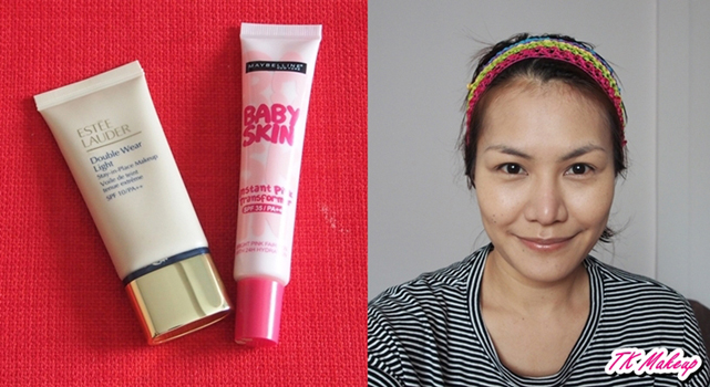 ต่อมาลงครีมรองพื้น เพราะรุ่นนี้แล้วบีบี ซีซี เอาไม่อยู่นะคะ แต่เราก็อยากแอ๊บใส เลยเพิ่มเบสเบบี้สกินเข้าไปกับรองพื้น ในอัตราส่วน 3:1 จะช่วยเพิ่มมิติกระจ่างใสอมชมพูนิด ๆ