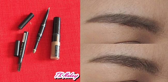 มาเริ่มจัดการเครื่องหน้าที่คิ้วบาง ๆ ของเรา จะเขียนแบบรูปทรงไม่เป๊ะมาก ไม่โก่งมาก เพราะเราต้องการให้ดูธรรมชาติ วันนี้ใช้ดินสอเขียนคิ้วแบบ 3 หัว โดยใช้ หัวดินสอวาดโครงคิ้วและถมปลายคิ้วมาถึงกลางคิ้ว แล้วใช้หัวฝุ่นปัดจากหัวคิ้วมากลางคิ้ว จากนั้นใช้หัวแปรงเกลี่ยให้เนียน แล้วปัดให้ได้รูปทรงอีกครั้งด้วยมาสคาร่าคิ้ว