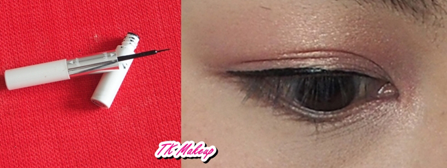 ต่อด้วยกรีดอายไลเนอร์ จะใช้แบบไหนก็ตามถนัด วันนี้ใช้แบบน้ำหัวพู่กัน วาดให้ชิดโคนขนตามากที่สุด ไม่เอาหนา ไม่เอาวิง แต่วาดให้เลยหางตาออกไปนิดหน่อยก็พอ