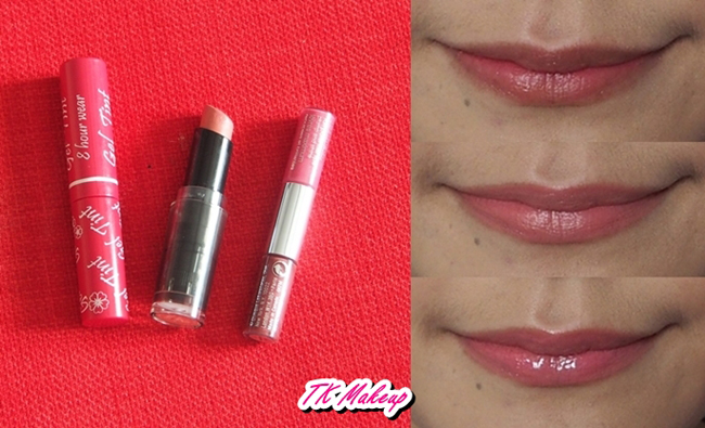 ปาก ทินท์ของ In2it, ลิปสติกของ Wet & Wild สี Just Peachy, ลิปกลอสของ Clinique