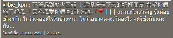 ล่าสุด (16 เมษายน 2558) ทั้งบี้และกุ๊บกิ๊บ ต่างก็หยอดข้อความหวาน ๆ ให้กันตามเป็นชุด นับตั้งแต่ข้อความว่า "สถานะไม่สำคัญ รู้แค่อยู่ข้าง ๆ กัน ไม่ว่าเจออะไรวันข้างหน้า ไม่ว่าอนาคตจะเกิดอะไร จะมีซึ่งกันและกัน..."